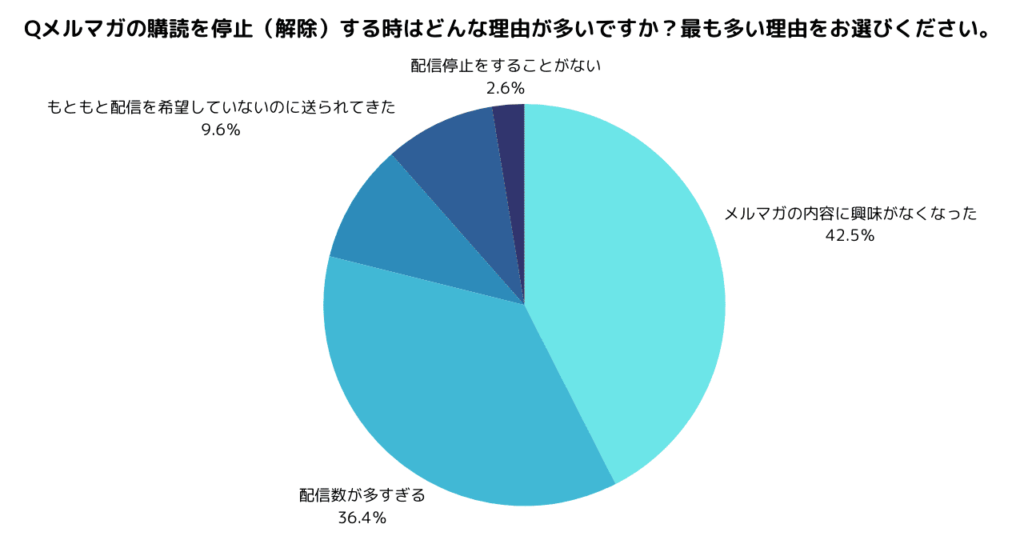 Q. メルマガの購読を停止(解除)する時はどんな理由が多いですか?最も多い理由をお選びください。